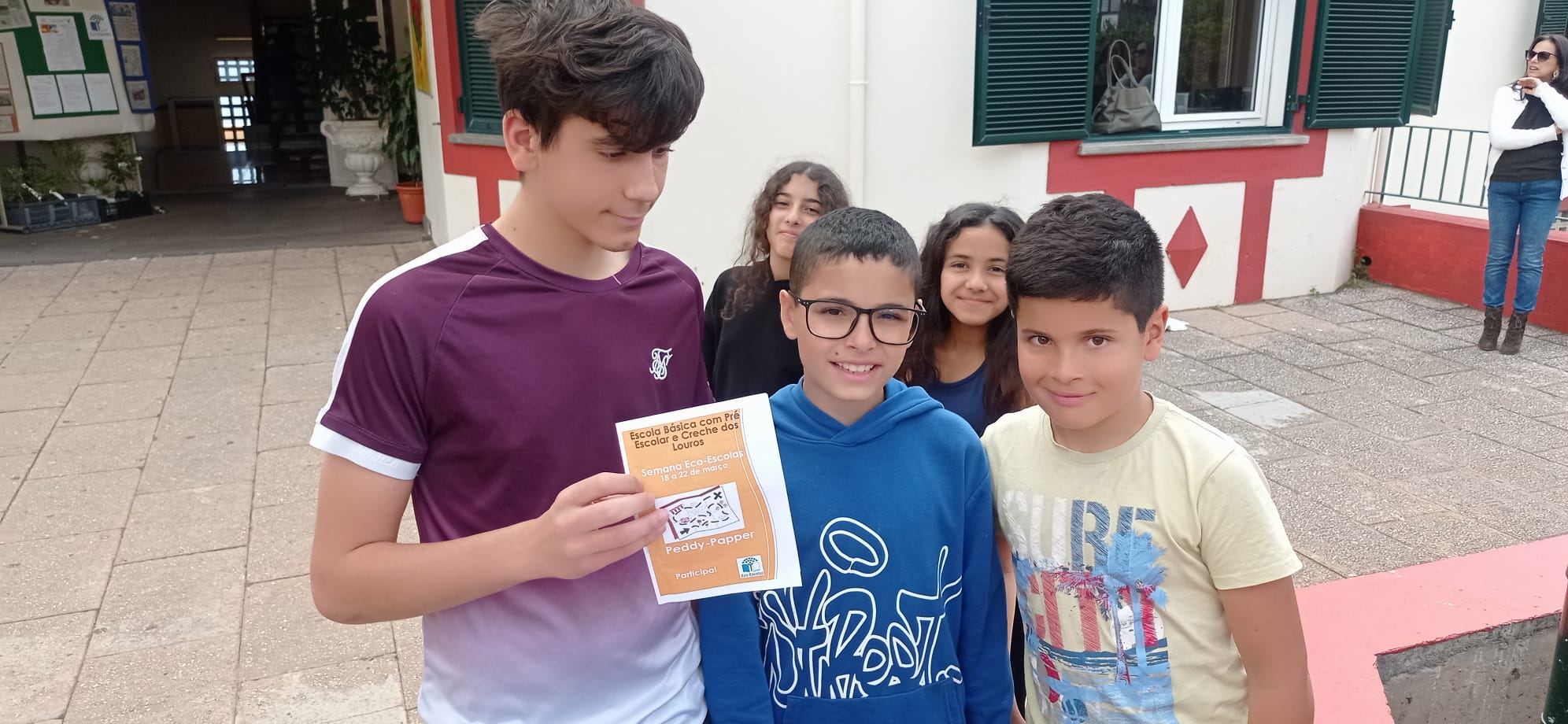 No dia 20 de março realizou-se um Peddy-paper no âmbito da Semana Eco-Escolas, no edifício sede, envolvendo alunos do 3º ano do edifício de São Filipe, alunos do 4º ano do edifício de São Gonçalo e alunos do 5º ano. O Peddy-paper envolveu 4 estações com questões sobre os temas do Eco-Escolas nomeadamente os Resíduos, Alimentação Saudável e Sustentável, Agricultura Biológica e Biodiversidade. Os alunos gostaram muito. O 1º classificado foi um dos grupos do 4º ano que receberam de prémio um porta chaves personalizado com o logotipo do Eco-Escolas e da nossa escola que foram elaborados na impressora 3D.